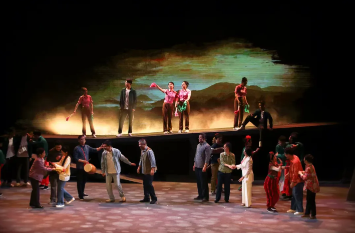 演出现场,演员们身着精美服饰,踏着铿锵节奏翩翩起舞。随着剧情的推进,演员们的独白与花鼓灯的舞蹈相融,精准传递出传承路上的纠结与执着,一招一式间尽显“东方芭蕾”的韵味。现场观众沉浸式感受融合剧的艺术魅力,每到精彩之处,雷鸣般的掌声便响彻剧场。